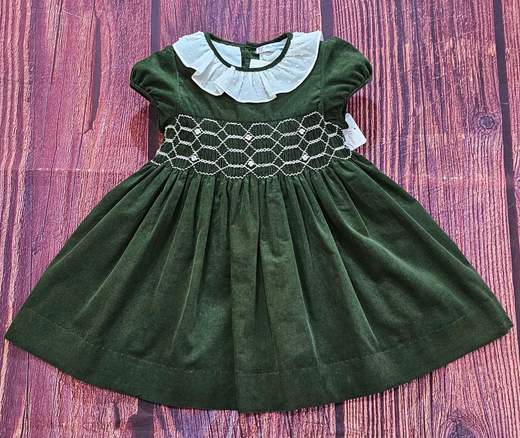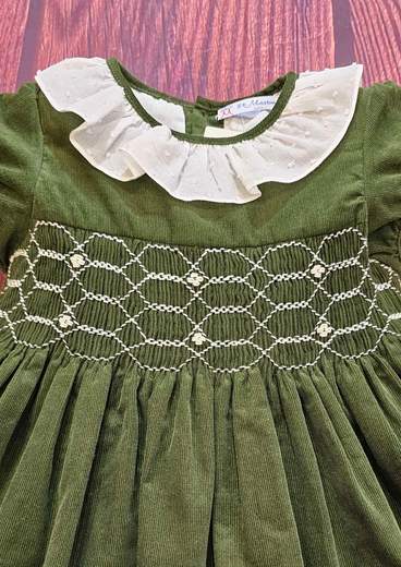 ABITO BATTESIMALE GIROMANICA MISTO COTONE CON PUNTO SMOKE, RICAMO A MANO, TRAMEZZI IN PIZZO E CUFFIETTA