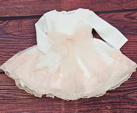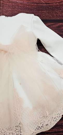 ABITO BATTESIMALE LUNGO 90CM. ORGANDIS MANICA LUNGA CON INSERTI PIZZO E CUFFIA
